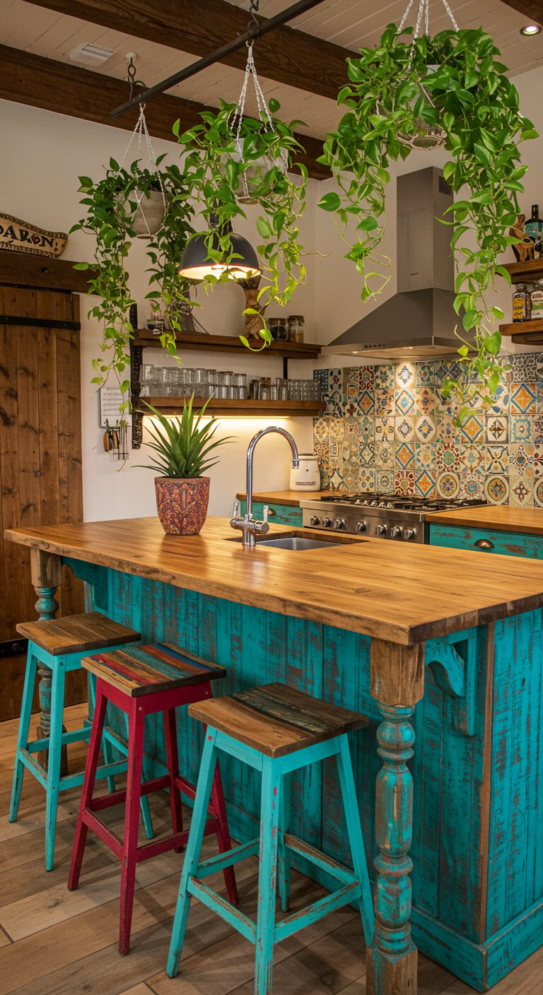 Mots-clés : déco cuisine bohème, cuisine colorée, style bohème, décoration ethnique, cuisine artistique, Pinterest déco, aménagement cuisine, tendance déco 2024