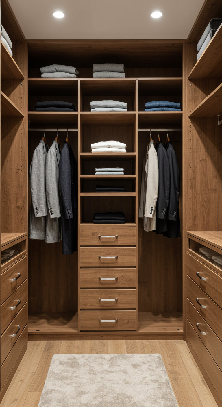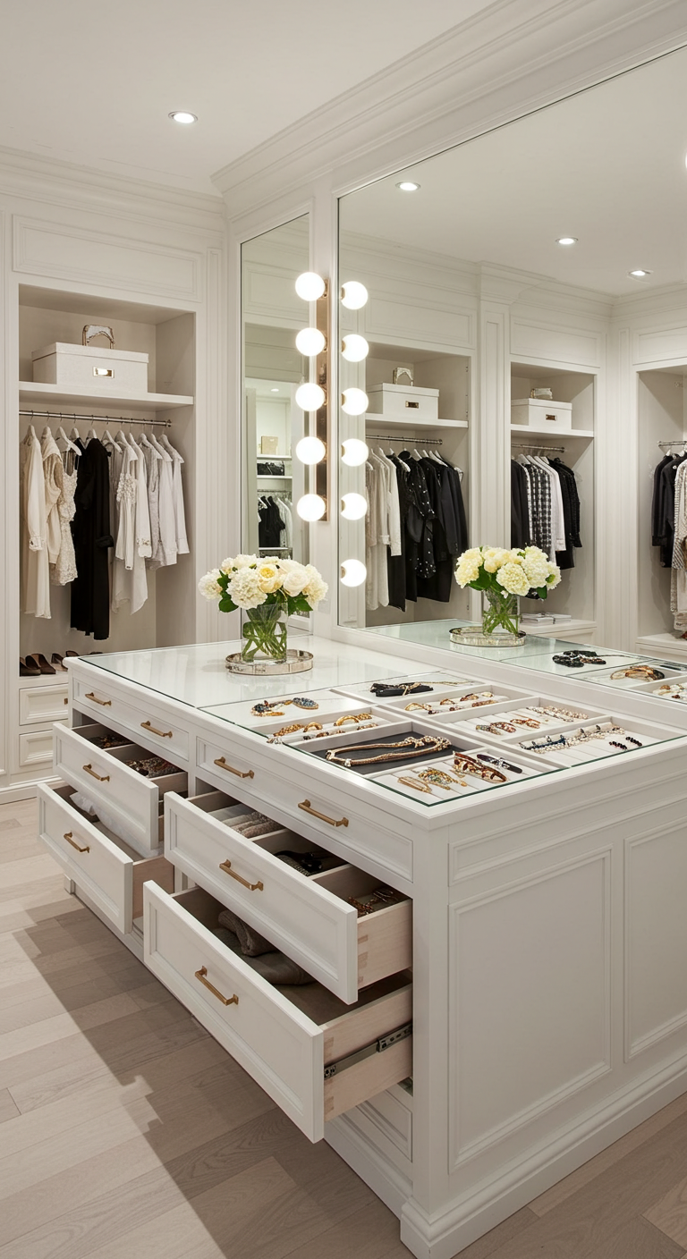 Transformez le centre de votre dressing en station de préparation complète avec un îlot sur-mesure qui combine rangement, surface de travail et élégance.