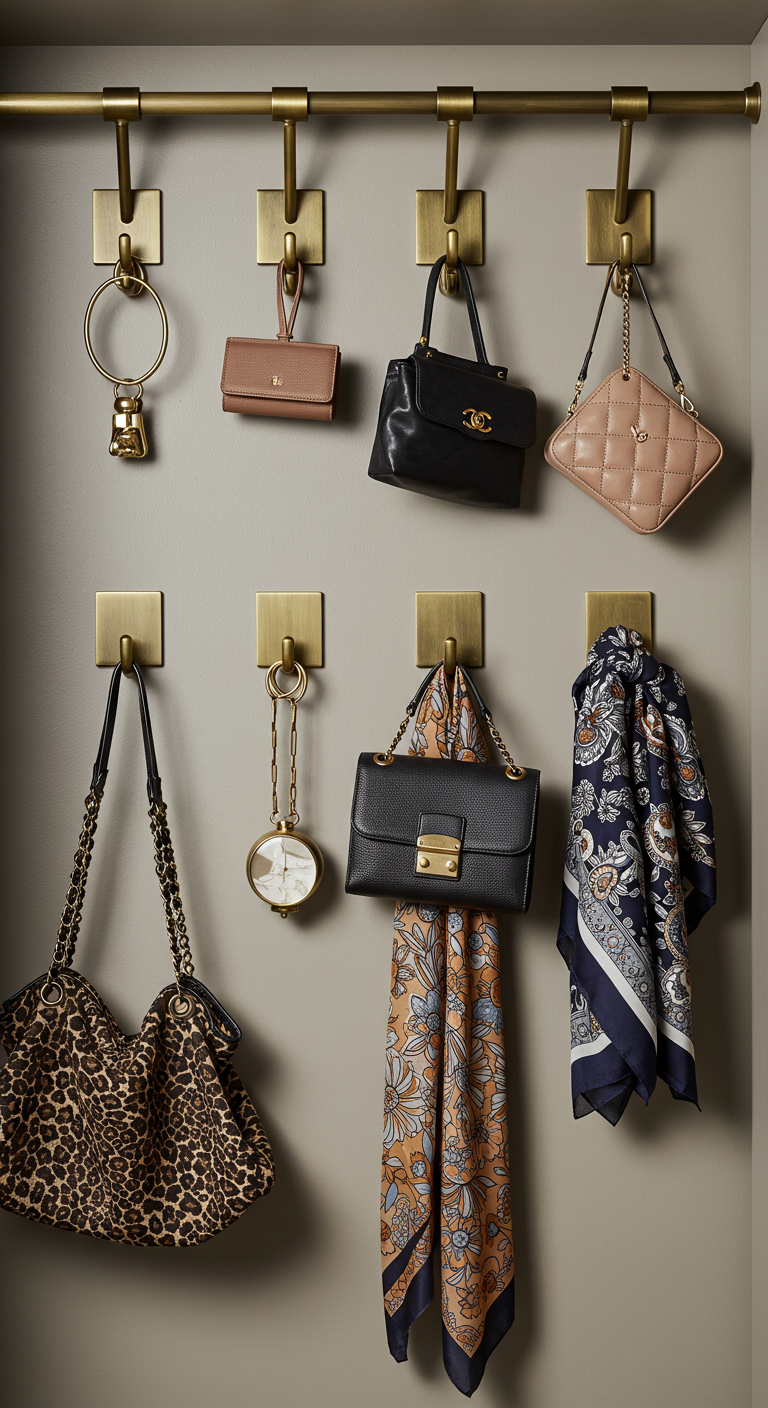 Exploitez chaque surface murale disponible avec des crochets et patères qui allient fonctionnalité et esthétique pour transformer vos accessoires en éléments décoratifs.
