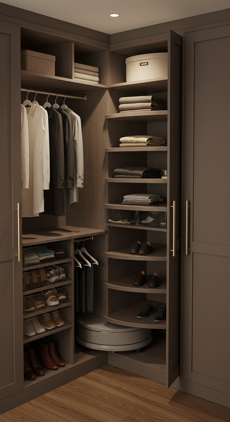 Ne laissez aucun centimètre carré inexploité ! Les angles de votre dressing recèlent un potentiel énorme avec les bonnes solutions d’aménagement.