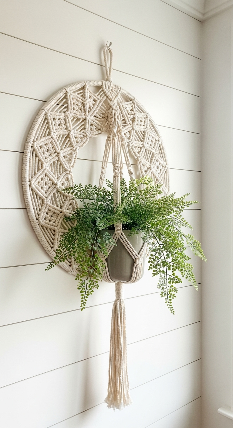 5. Le Cache-pot Macramé Mural Vintage en Demi-Lune