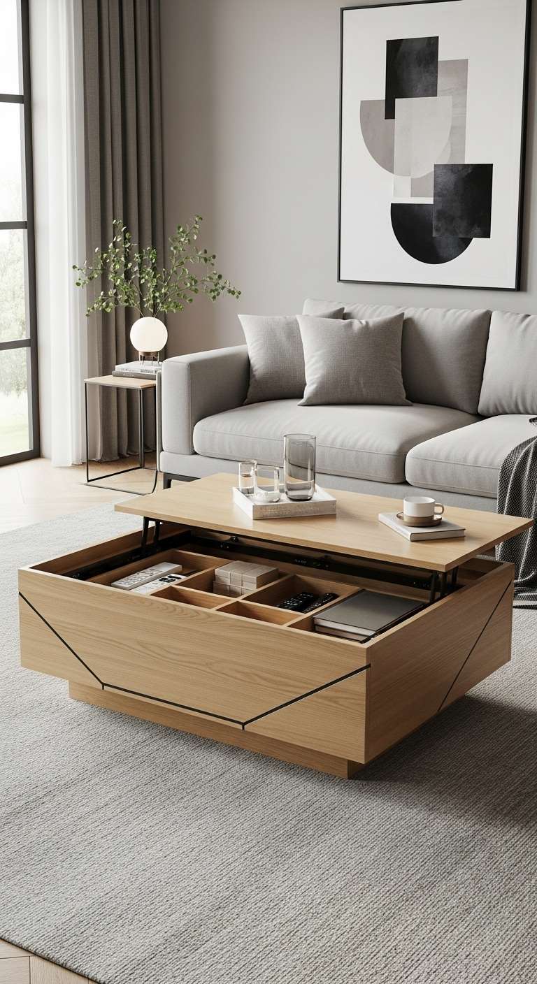 La table basse à double fond illustre parfaitement comment un élément central du salon peut allier esthétique épurée et fonctionnalité cachée. Ce meuble astucieux présente une surface apparemment ordinaire qui dissimule un compartiment de rangement accessible via un plateau relevable ou coulissant. Cette conception permet de maintenir votre table libre de tout encombrement tout en gardant à portée de main télécommandes, magazines, téléphones, et autres objets du quotidien.