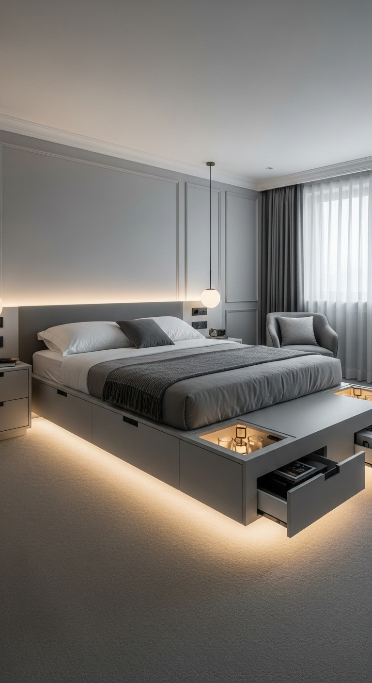 3. Tête de Lit Compartimentée Invisible