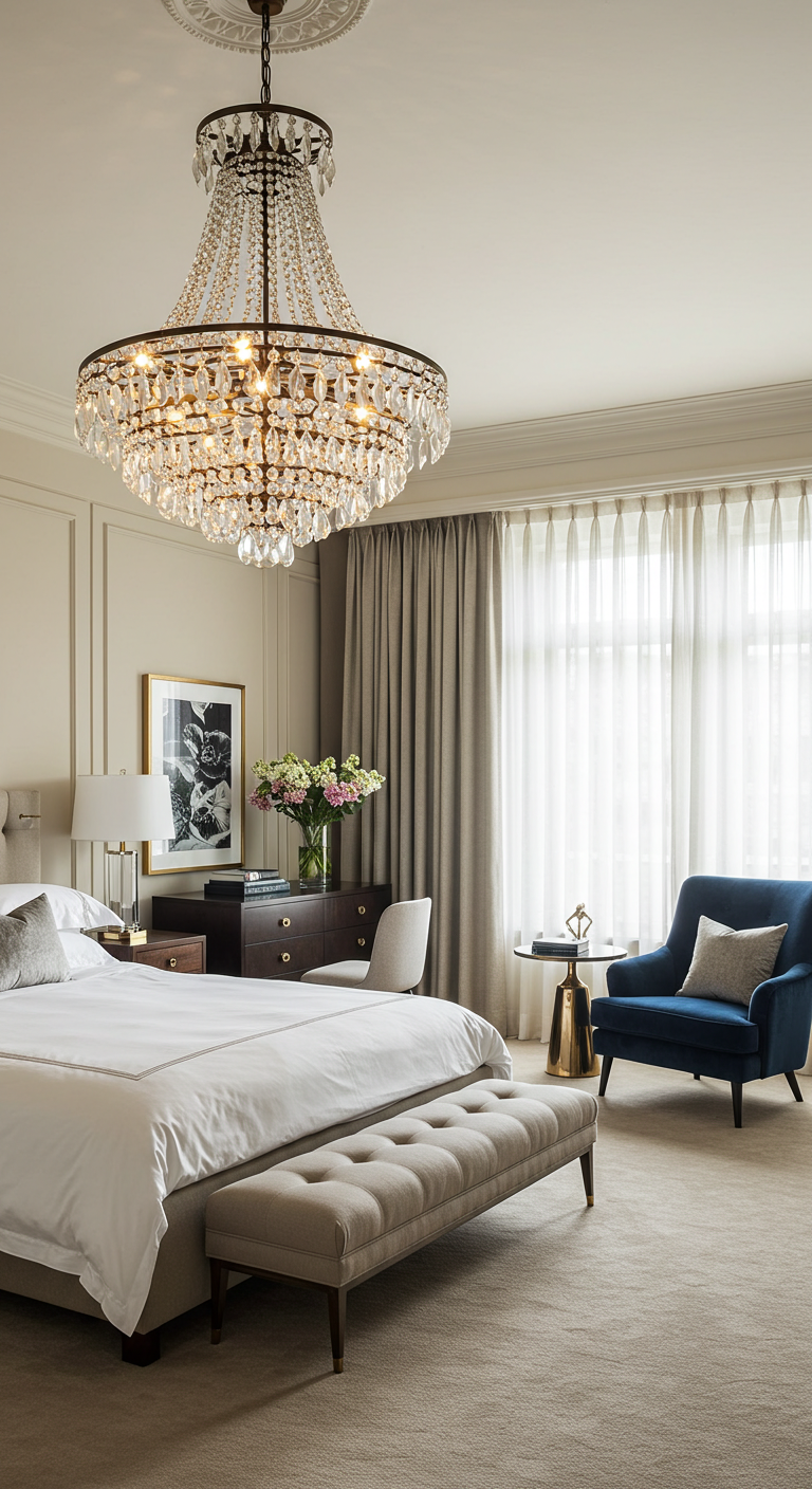 Un lustre en cristal transforme instantanément une chambre ordinaire en suite royale. Cette pièce d’éclairage spectaculaire ne se contente pas d’illuminer l’espace – elle devient une véritable œuvre d’art suspendue qui diffuse une lumière magique à travers ses multiples facettes.
