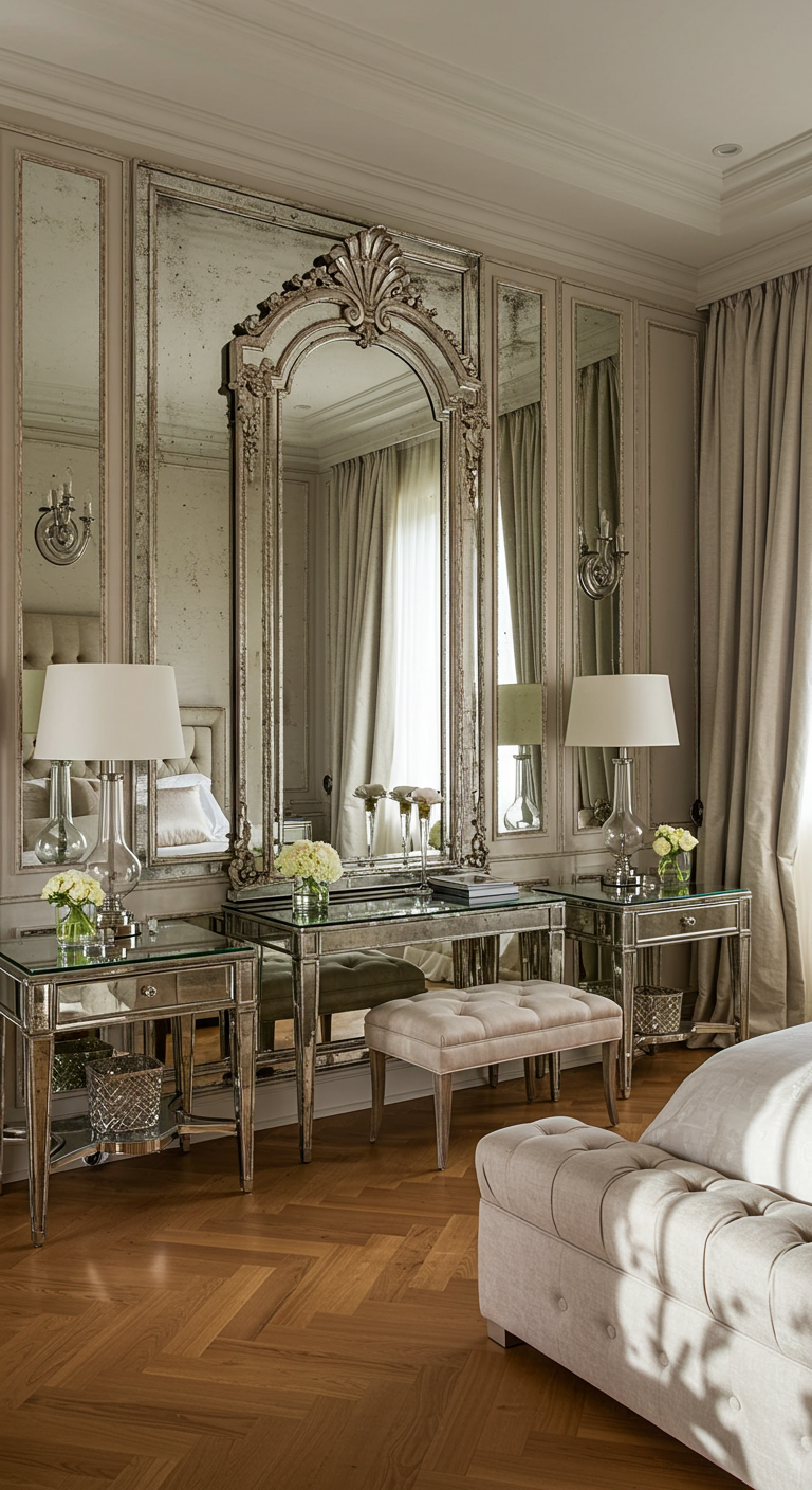 Les miroirs sont les alliés secrets d’une décoration élégante. Au-delà de leur fonction pratique, ils agrandissent visuellement l’espace, multiplient la lumière naturelle, et peuvent servir de véritables œuvres d’art murales.