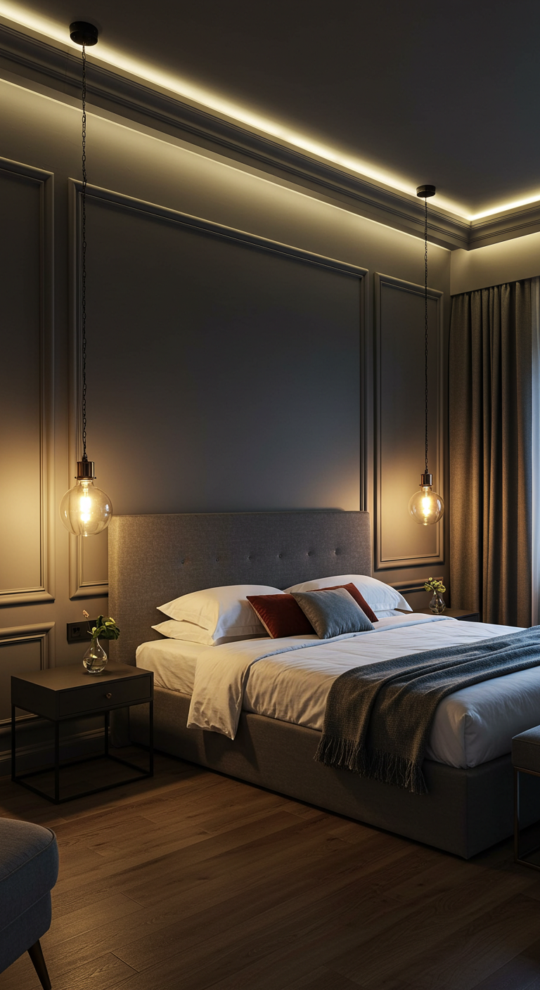 Les murs texturés ajoutent une dimension sculpturale à votre chambre, créant un intérêt visuel et tactile qui élève instantanément le niveau de sophistication de l’espace.