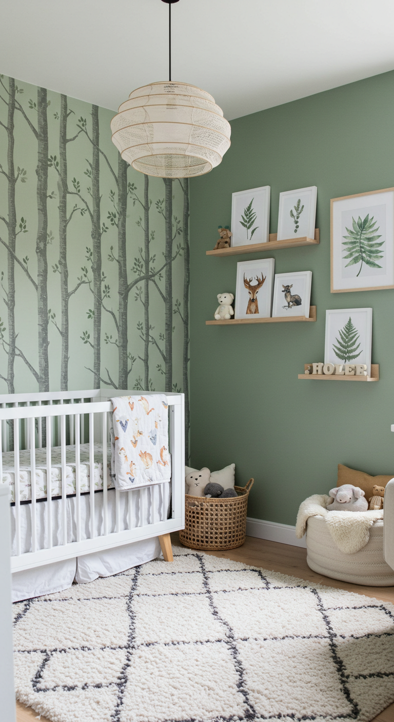La forêt enchantée revisitée dans un style contemporain apporte fraîcheur et sérénité. Cette thématique nature favorise un environnement apaisant.