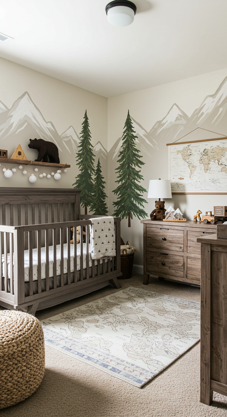 Créez un chalet douillet en pleine ville ! Cette décoration montagnarde apporte chaleur et authenticité à l’espace bébé.
