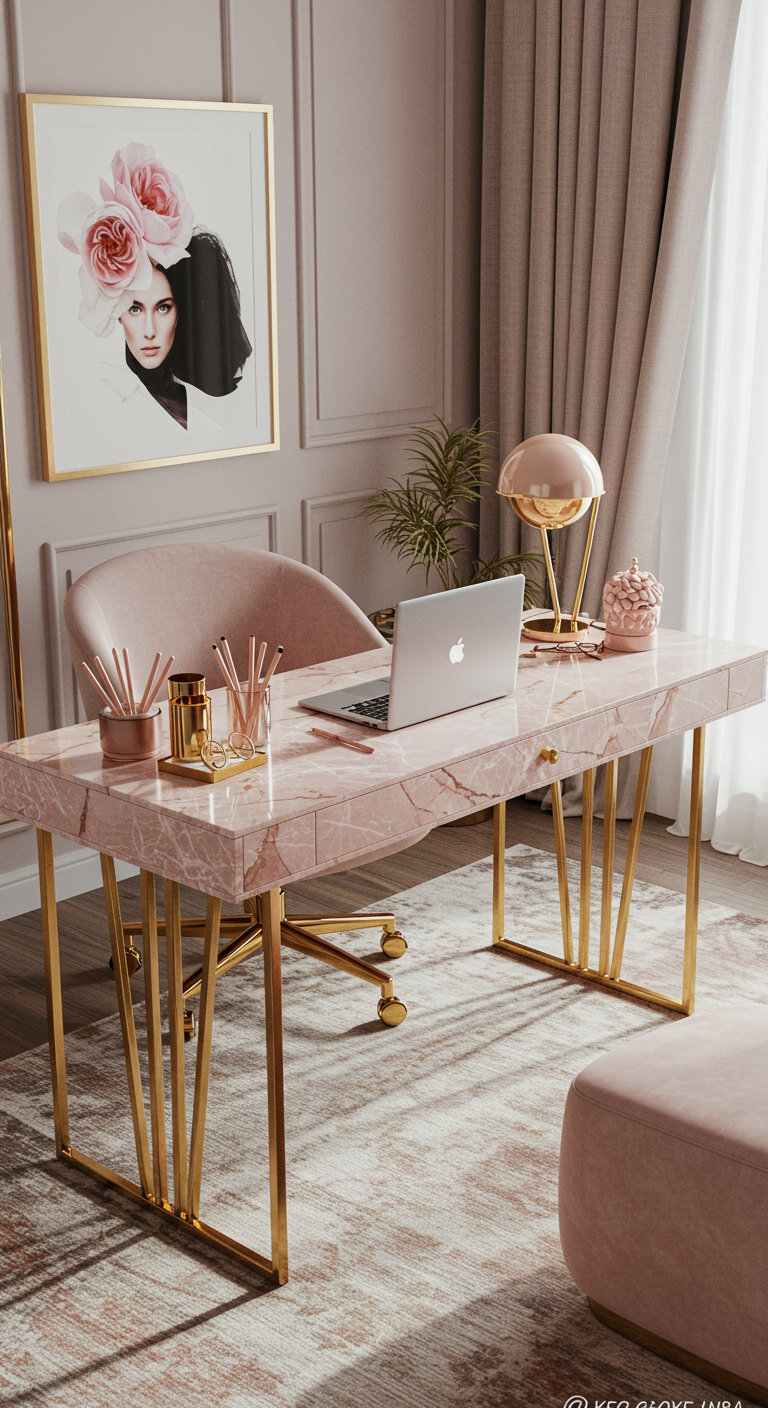 #DécoBureau #BureauRose #BureauFéminin #HomeOffice #DécorationIntérieure #EspaceDeTrail #BureauDesign #RoseGold #Inspiration #Productivité #TravailADomicile #DécoPink #OrganisationBureau #BureauChic #FeminineWorkspace