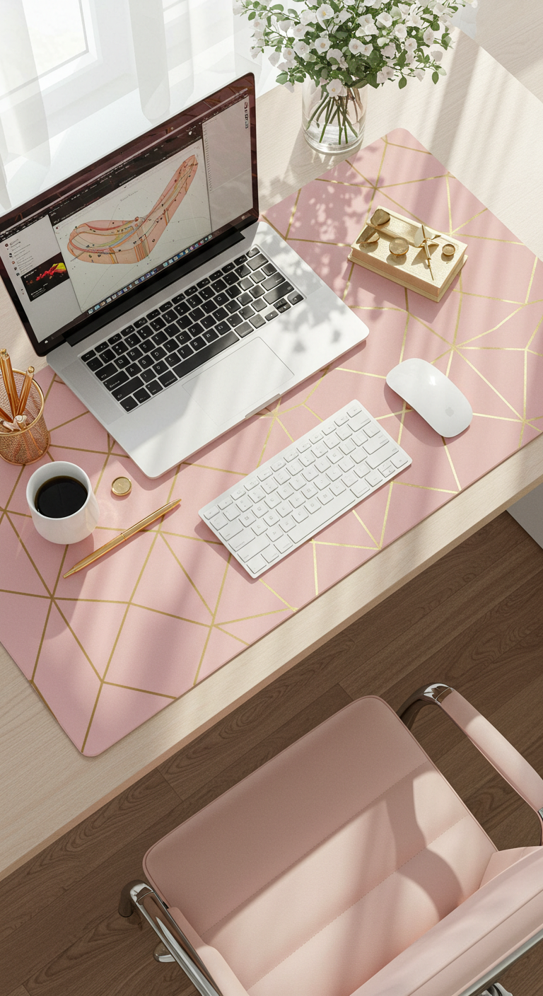 9. Le Tapis de Souris XXL Rose avec Détails Dorés