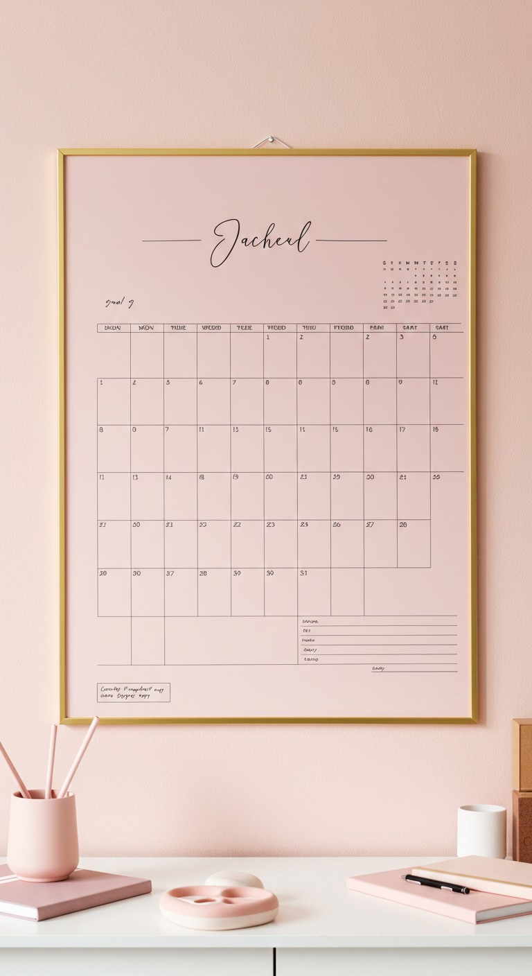 11. Le Calendrier Mural Effaçable Rose avec Cadre Doré