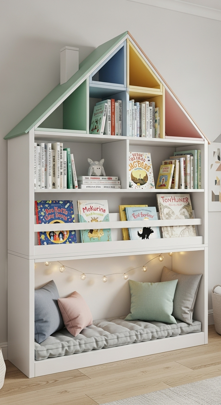 Imaginez une bibliothèque qui ressemble à une adorable petite maison ! Cette pièce de mobilier devient instantanément le coin préféré de vos enfants pour découvrir leurs histoires favorites.