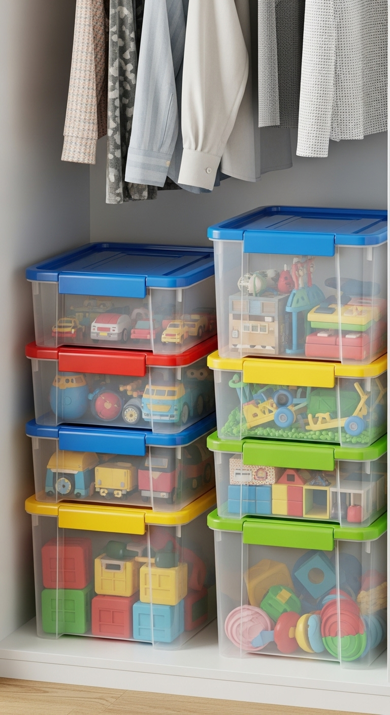 7. Les Bacs de Rangement Transparents à Clips Colorés