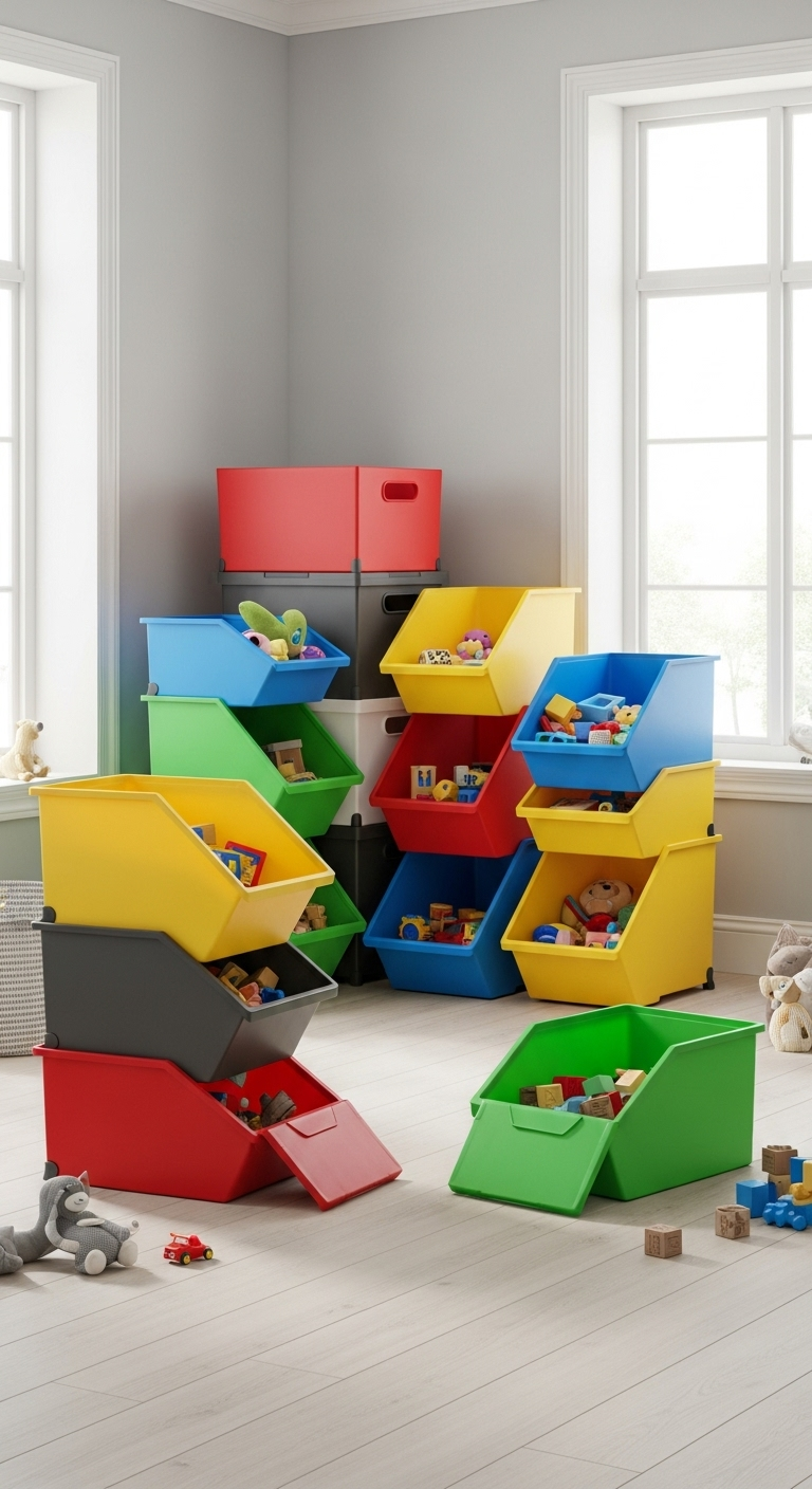 - Parfait pour le tri sélectif des jouets : Un bac par catégorie (voitures, poupées, jeux de construction…)