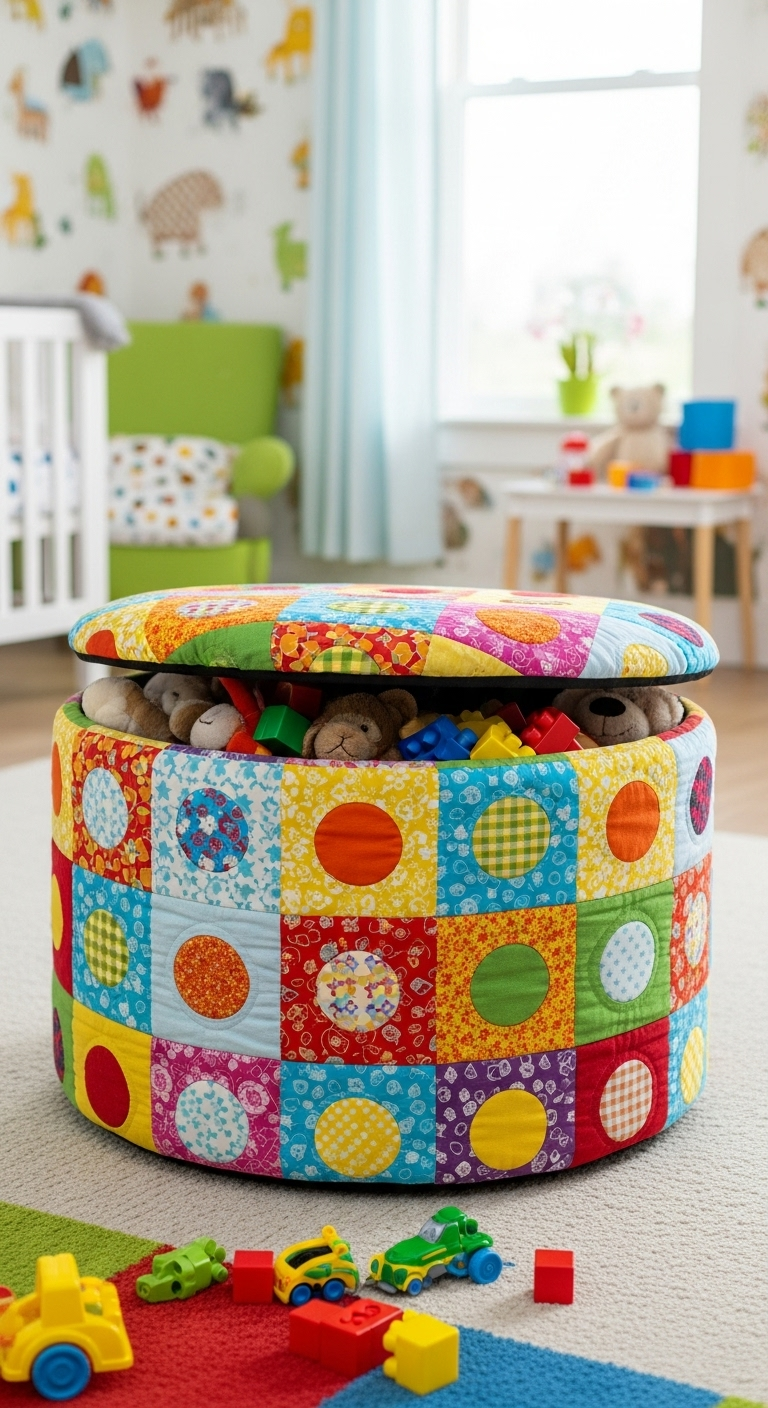 12. Le Pouf de Rangement Patchwork Coloré