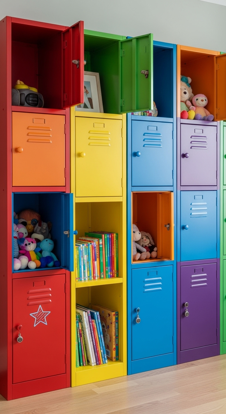 Personnalisation fun : Ajoutez un porte-étiquette sur chaque casier où l’enfant peut écrire son nom et coller des stickers. Installez un petit crochet à l’intérieur pour suspendre un sac ou une veste.