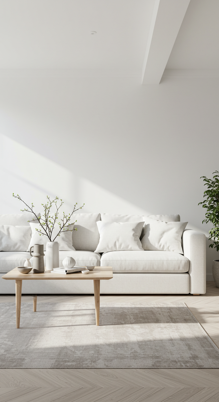 Le canapé blanc est l’âme du salon scandinave lumineux. Il doit inviter à la détente tout en maintenant l’esthétique épurée caractéristique du style nordique.