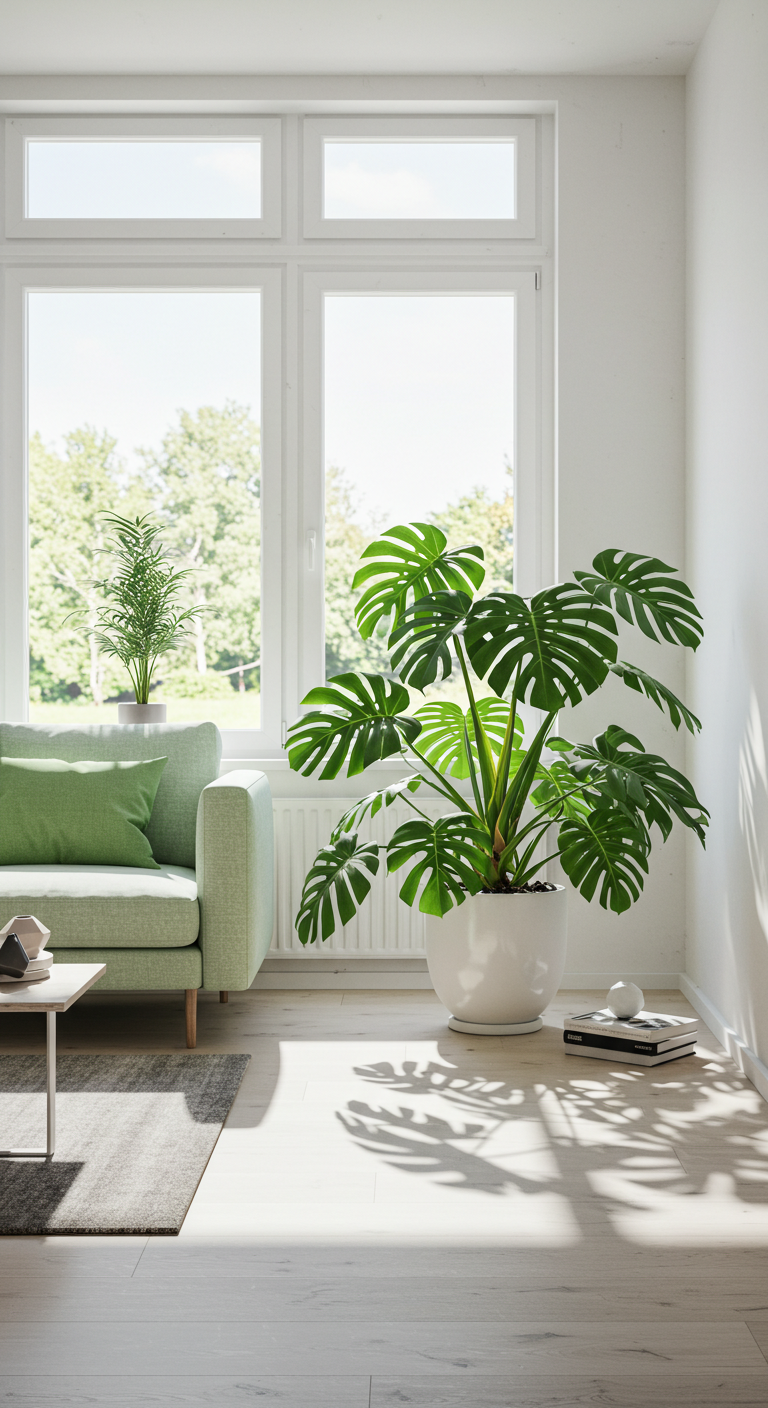 Les grandes plantes vertes sont indispensables pour créer ce lien avec la nature characteristic du style scandinave. Elles apportent de la vie et de la couleur sans compromettre la luminosité.