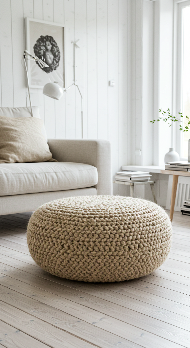 15. Le Pouf en Laine Naturelle : La Fonctionnalité Nomade