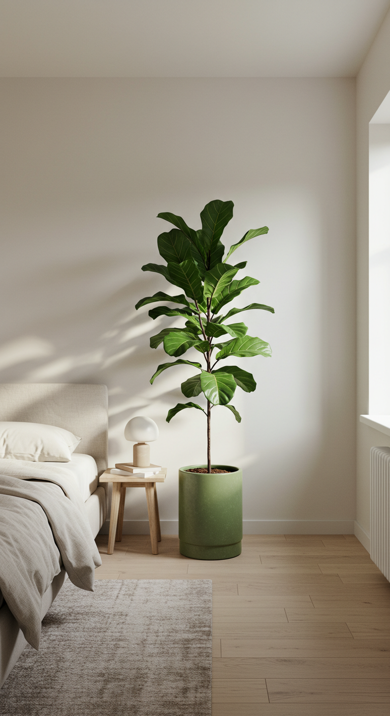 La végétation apporte la vie nécessaire à un espace minimaliste sans compromettre sa pureté esthétique. Choisissez des plantes aux formes architecturales marquées : sansevieria aux lignes droites, ficus lyrata au feuillage sculptural, ou strelitzia aux grandes feuilles graphiques. Une ou deux plantes suffisent à dynamiser l’ensemble.