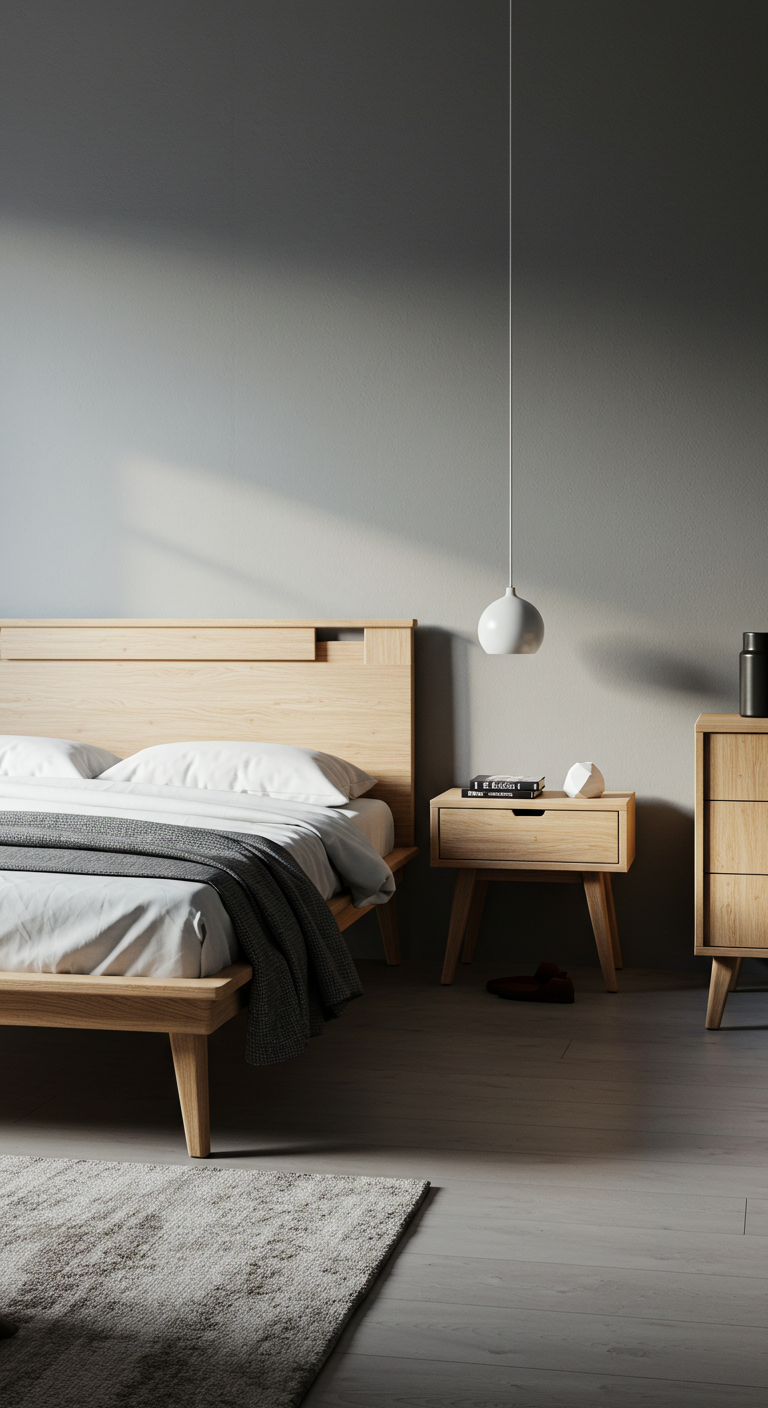 Privilégiez les meubles multifonctionnels : une table de chevet avec rangement intégré, un banc-coffre au pied du lit, ou une commode qui fait office de coiffeuse. Les matériaux nobles comme le chêne massif ou le métal brossé garantissent longévité et élégance.