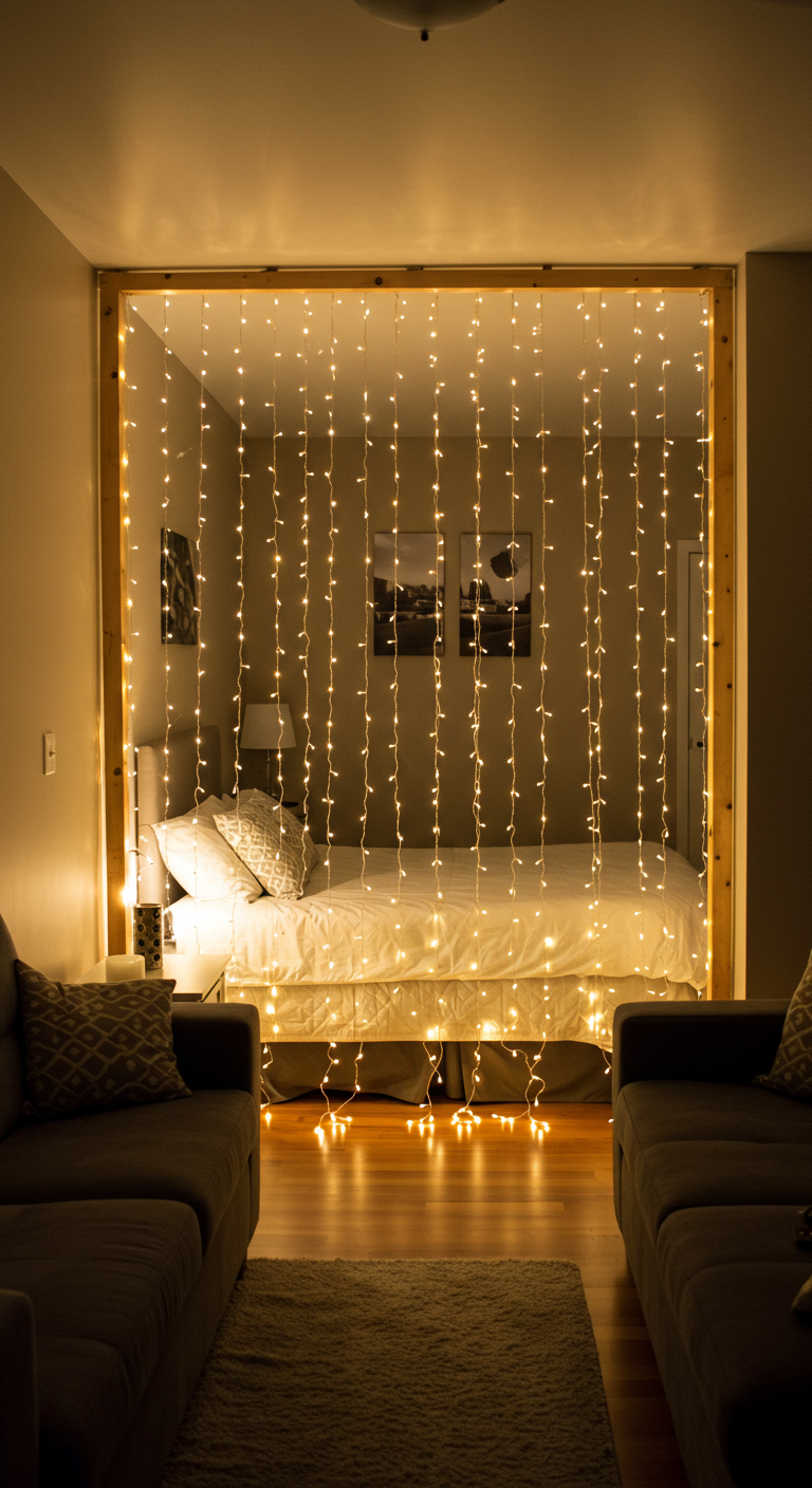 Créez une séparation fonctionnelle et esthétique dans votre espace en transformant un paravent en élément lumineux. Cette idée est parfaite pour les studios ou les grandes pièces nécessitant une délimitation des zones.