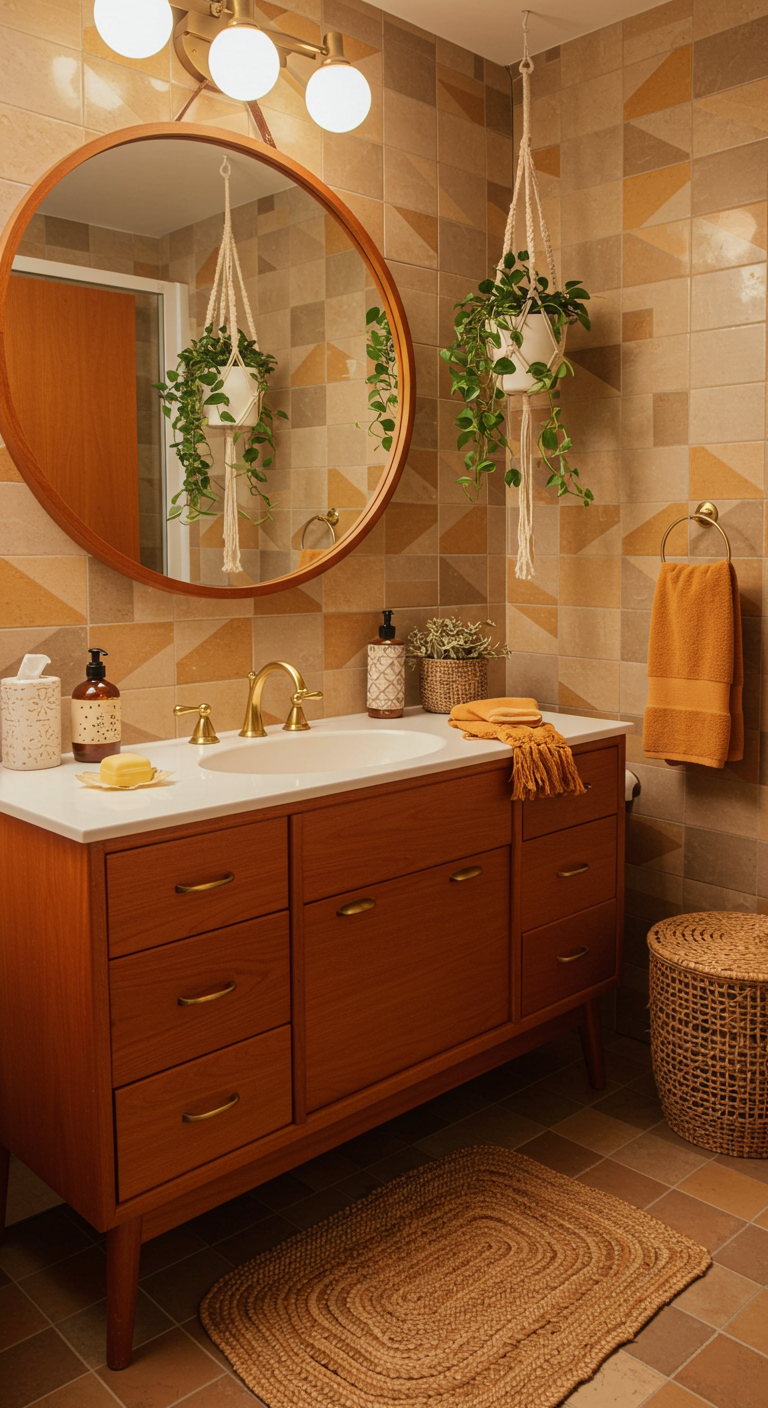 Les motifs géométriques des années 70, avec leurs formes organiques et leurs couleurs terre, apportent une touche bohème et chaleureuse à votre salle de bain vintage. Ces carreaux aux motifs psychédéliques ou aux formes géométriques complexes créent une ambiance décontractée et originale.