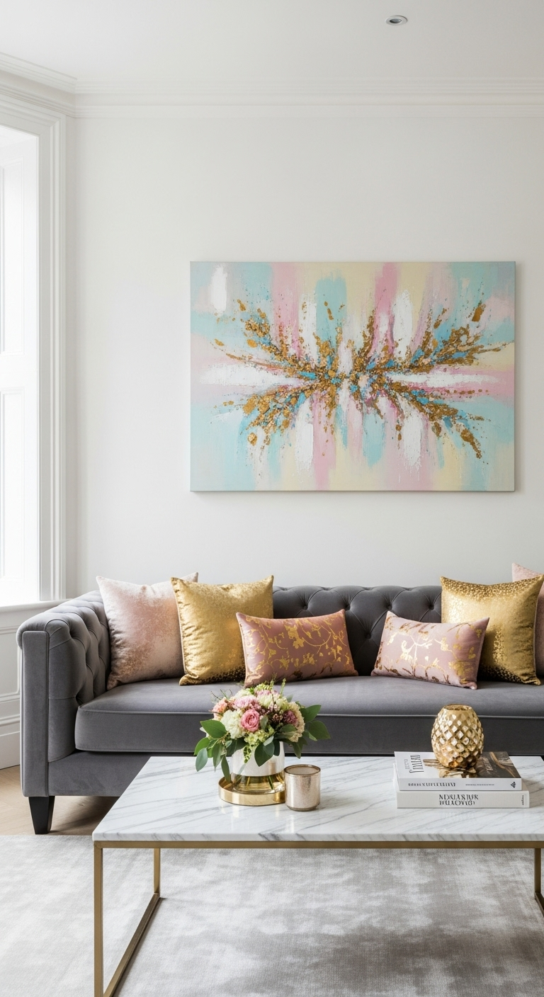 Pour maximiser l’effet, positionnez ce mur derrière votre canapé ou votre meuble TV, et éclairez-le avec des spots orientables ou des lampes murales pour jouer avec les ombres et la texture de la peinture.
