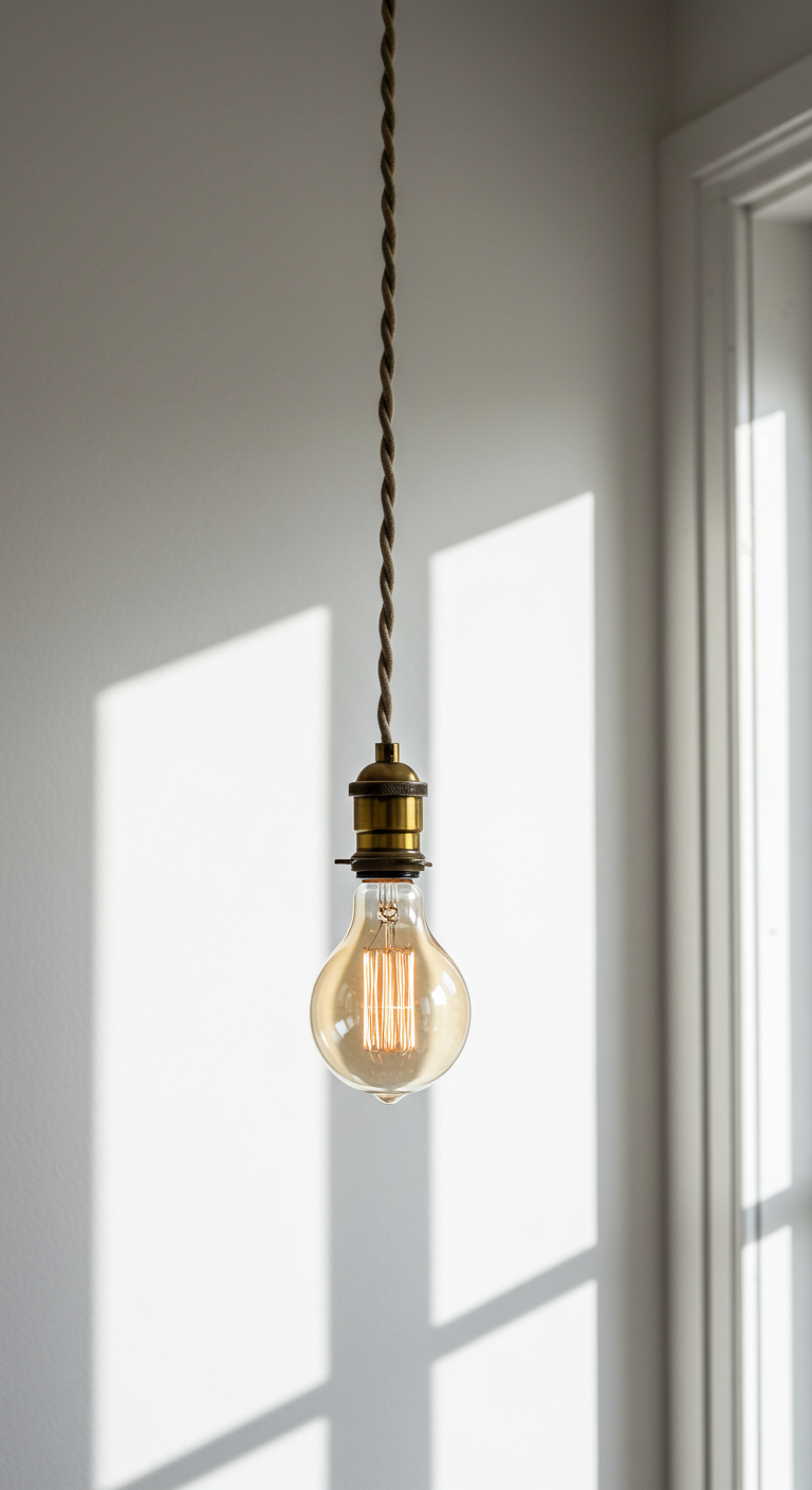 Cette idée incarne l’essence même du design épuré. Une simple ampoule Edison suspendue à un câble textile torsadé crée un point focal élégant sans encombrer l’espace. Le câble peut être choisi dans différentes couleurs pour s’harmoniser avec votre palette décorative : noir pour un look industriel, doré pour une touche glamour, ou coloré pour une ambiance bohème.