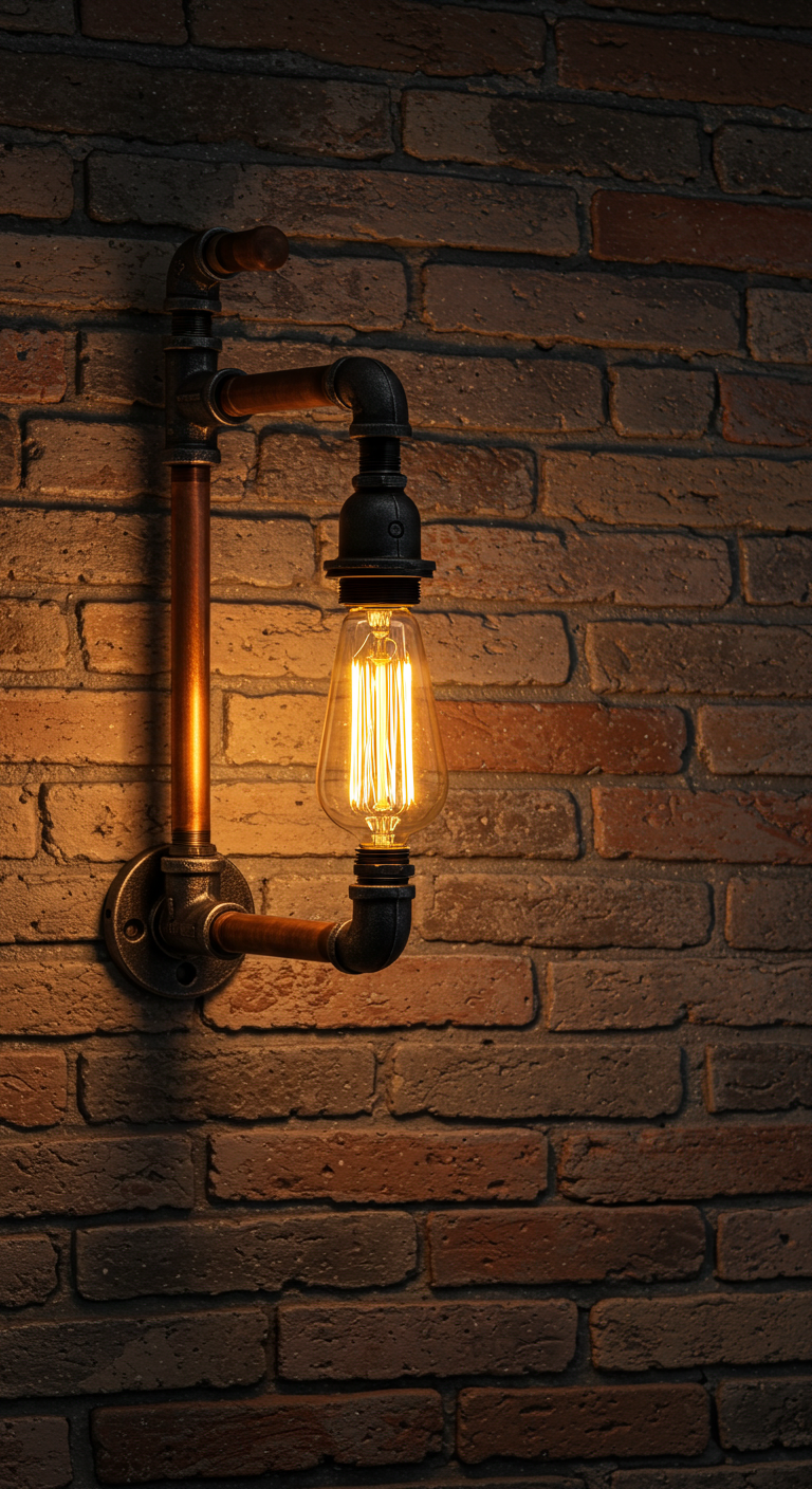 Les appliques murales fabriquées avec des tuyaux de plomberie recyclés incarnent parfaitement l’esprit upcycling et le charme industriel. Cette création artisanale transforme des matériaux bruts en pièces décoratives uniques. Les coudes, les raccords et les vannes en métal deviennent des éléments esthétiques à part entière.