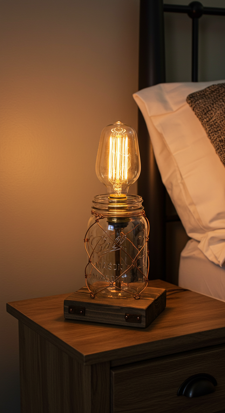 Transformer un bocal Mason vintage en lampe de table est un projet DIY accessible qui produit des résultats spectaculaires. Cette création marie le charme rustique du verre transparent avec l’élégance industrielle de l’ampoule Edison. Le bocal peut être laissé transparent pour une esthétique épurée ou légèrement teinté pour un effet plus intimiste.