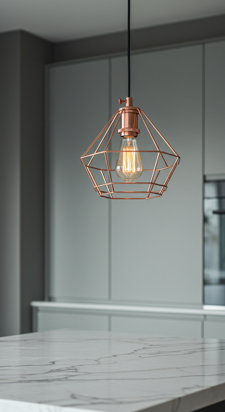 Ces luminaires sont particulièrement efficaces lorsqu’ils sont installés en série de trois au-dessus d’un îlot de cuisine, créant un rythme visuel harmonieux. Dans une salle à manger, une grande suspension géométrique centrée au-dessus de la table devient un point focal architectural. Le reflet chaleureux du cuivre amplifie la lumière dorée de l’ampoule Edison, créant une atmosphère accueillante et sophistiquée qui convient aussi bien aux intérieurs scandinaves qu’industriels.