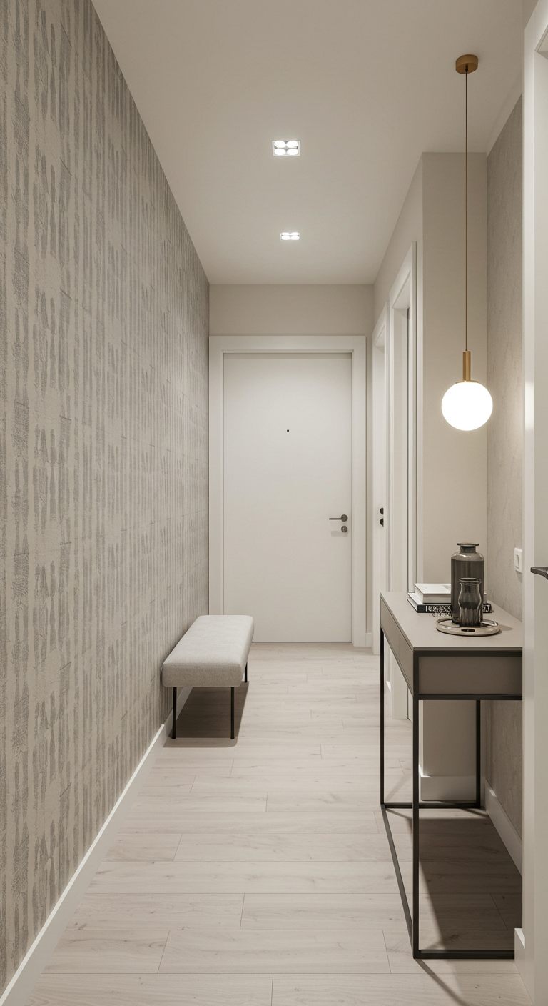 Pour les entrées très étroites, optez pour une banquette murale qui ne dépasse pas 35 cm de profondeur. Les modèles sur pieds créent une sensation d’espace supplémentaire.