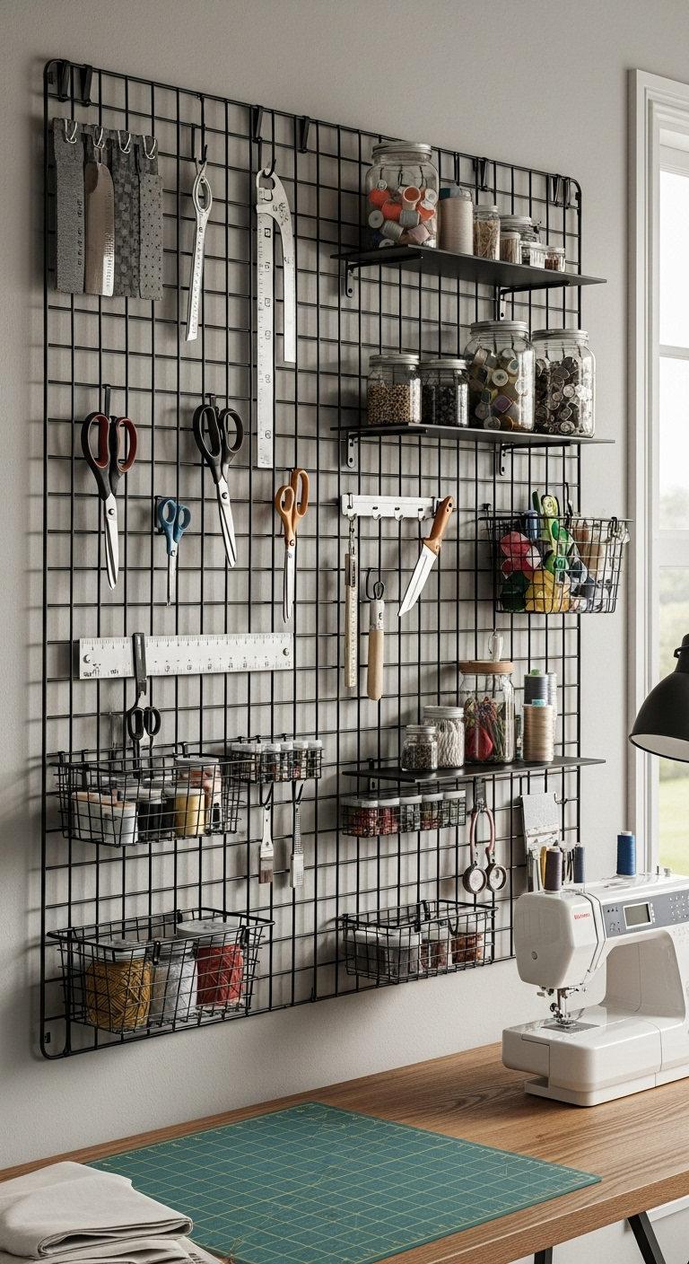 Cette solution est particulièrement appréciée dans les ateliers créatifs, les garages, les cuisines ou les bureaux où les besoins évoluent régulièrement. Vous pouvez réorganiser complètement votre système en quelques minutes sans percer de nouveaux trous. Dans une cuisine, accrochez ustensiles, casseroles et torchons pour un rangement à portée de main. Dans un atelier, organisez outils, fournitures artistiques et matériel de bricolage. Au bureau, créez un tableau d’organisation visuel avec documents en cours, calendrier et inspirations. Le métal noir mat ou industriel apporte une cohérence visuelle même lorsque le mur est chargé d’objets divers, transformant le désordre potentiel en composition organisée et esthétique.