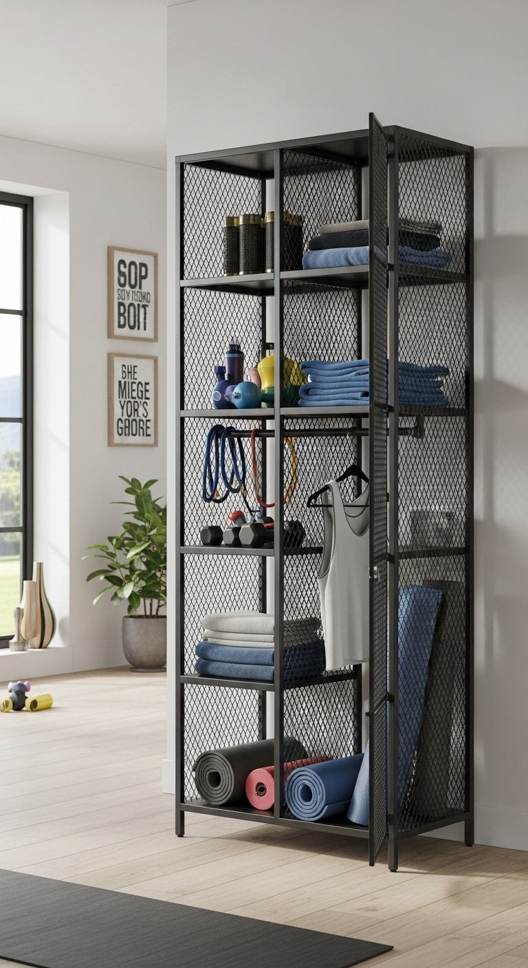 Pour les passionnés de fitness qui ont aménagé une salle de sport à domicile, un vestiaire en métal grillagé est l’équipement de rangement idéal. Inspiré des vestiaires professionnels, ce meuble allie robustesse et praticité pour organiser tout votre matériel sportif.