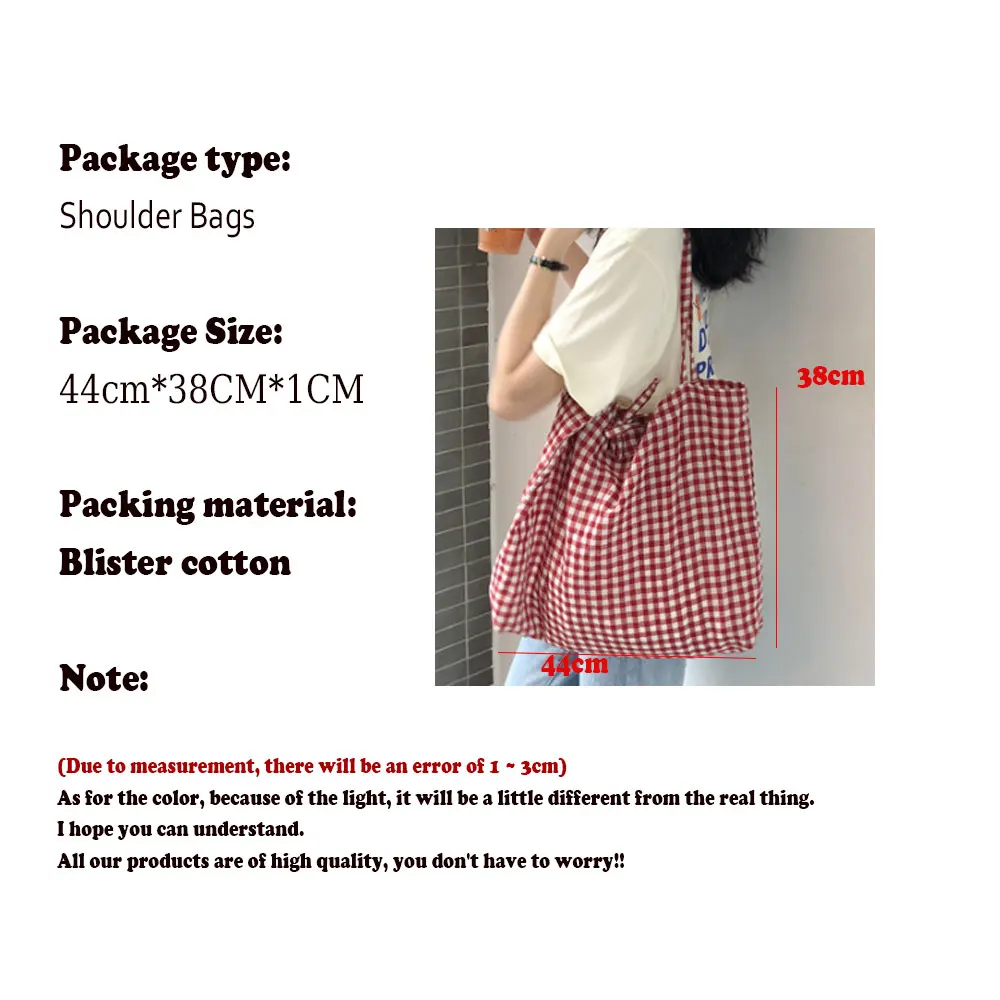 Canvas Bag Woman Casual Plaid Women Shopping Bag Large Capacity Cute Tote Handbags Cloth Double-sided Girls Frenum Shoulder Bags