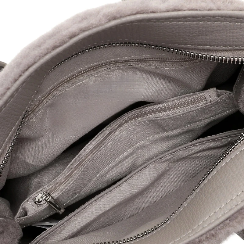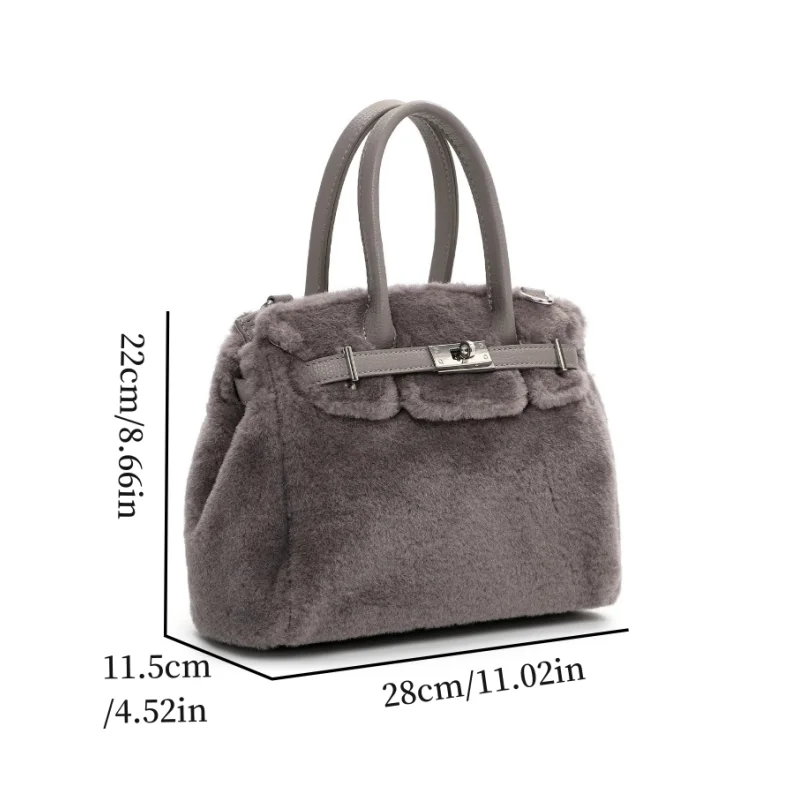FAUX FUR TOTE BAG, Luxury Designer Shopper Bag for Ladies, Fashion Top Handle Bag with Crossbody Strap, Women’s Shoulder Handbag