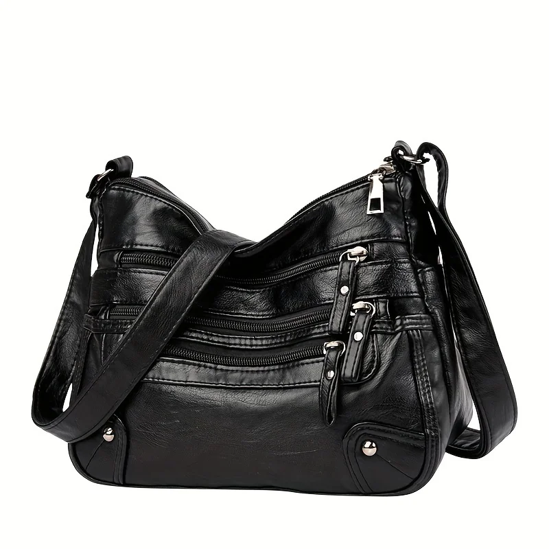 Stylish Multi Zipper Crossbody Bags, Soft Vegan Pu Leather Shoulder Bag, Women’s Multi Pockets Handbag Purse for Women Daily Use